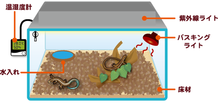 市販されているプラケースで飼育可能ですが、フタの開け閉めで音がなるケースはトカゲがびっくりして餌を食べづらくなってしまいます。扉式など開閉が静かで簡単なものだと便利です。