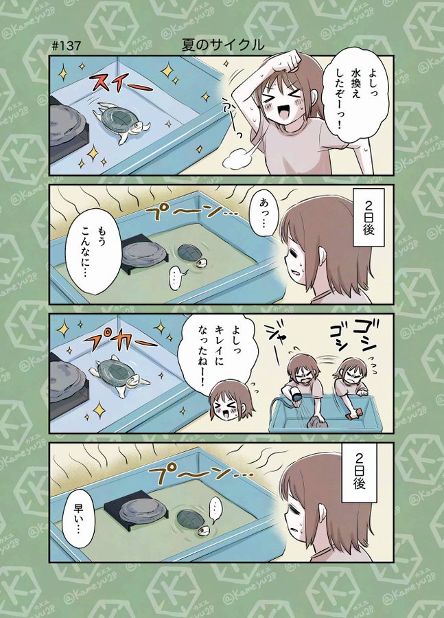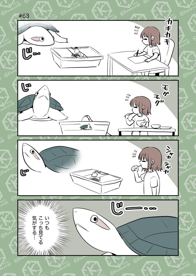 普段は漫画家として活動しており、主にSNSで亀との暮らしのあるある4コマ漫画を投稿しています。