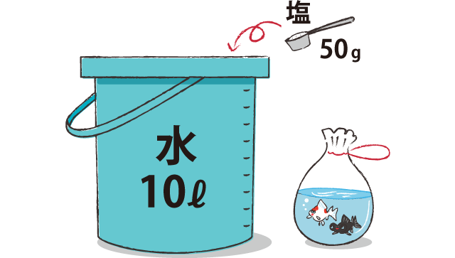 塩水浴とは、飼育水に塩を入れて魚の調子を整えることです。塩水浴をすると、金魚の病気予防になります。