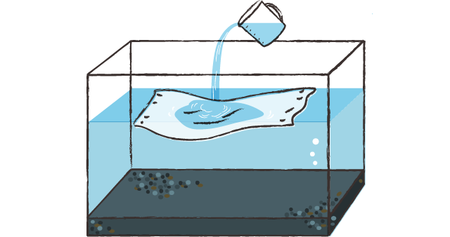 水道水を、水槽や鉢の縁より1~2センチメートル下程度まで静かに注ぎましょう。