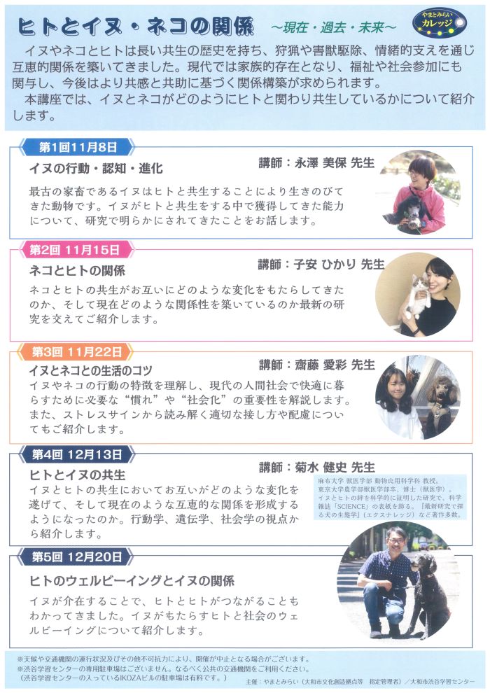 ・名称…やまとみらいカレッジ ヒトとイヌ・ネコの関係 ~現在・過去・未来~