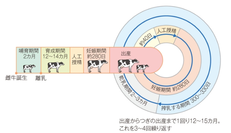 ・画像1.一般社団法人 Jミルクウェブサイト、乳牛のライフサイクル より