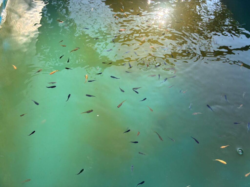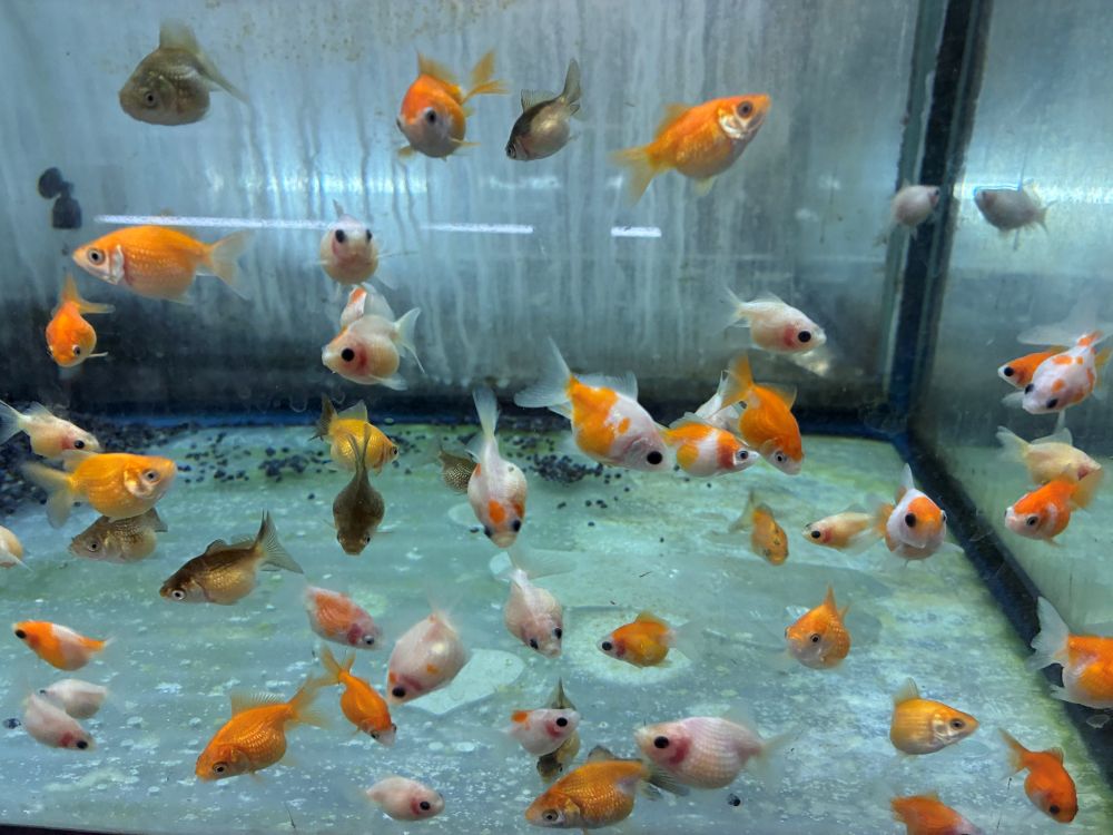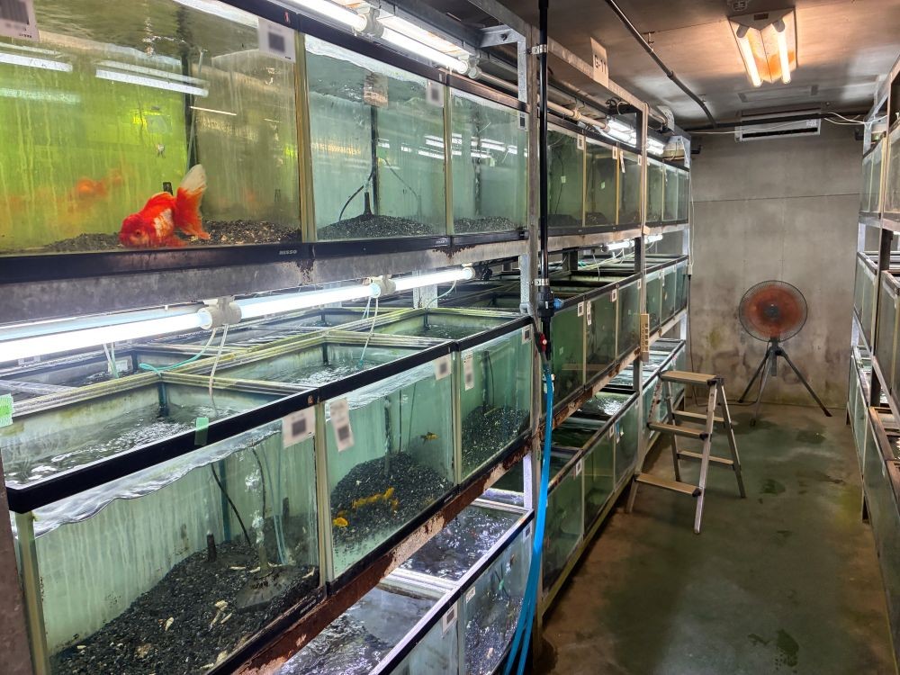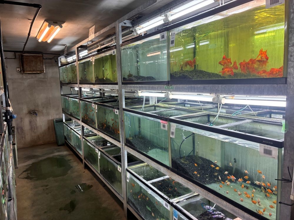 まず、金魚の水槽が目に入りました。どれもスタッフによって丁寧に飼育されており、きれいに保たれた水槽が整然と並んでいました。