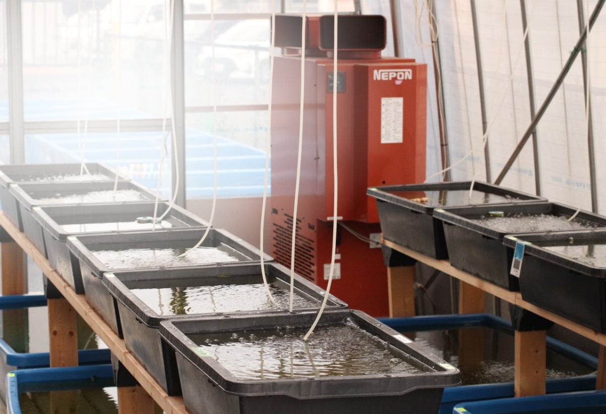 「J-Killy」というオリジナルのメダカのブリードも行っているとのことで、ブリード施設も見学させていただきました。