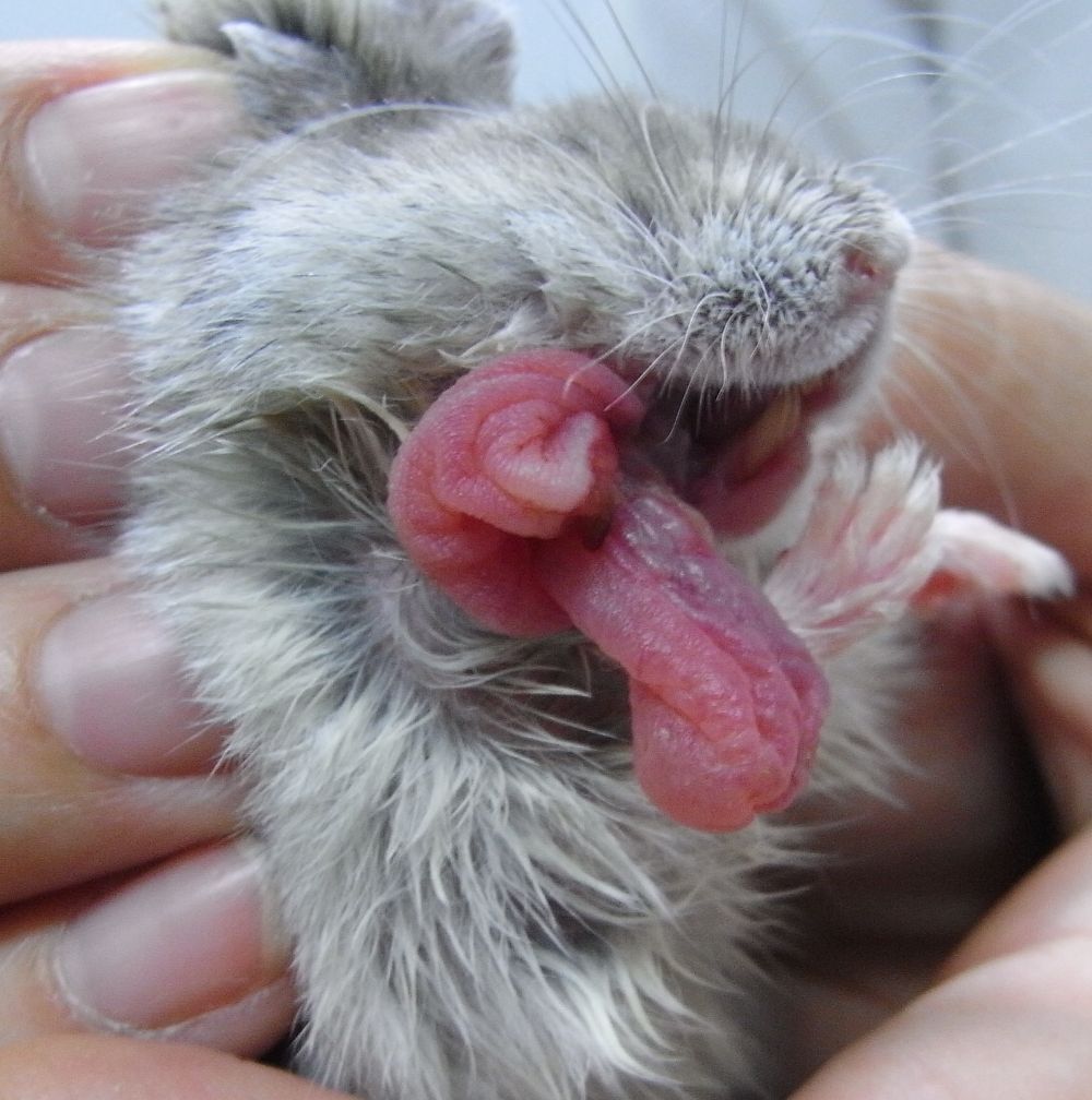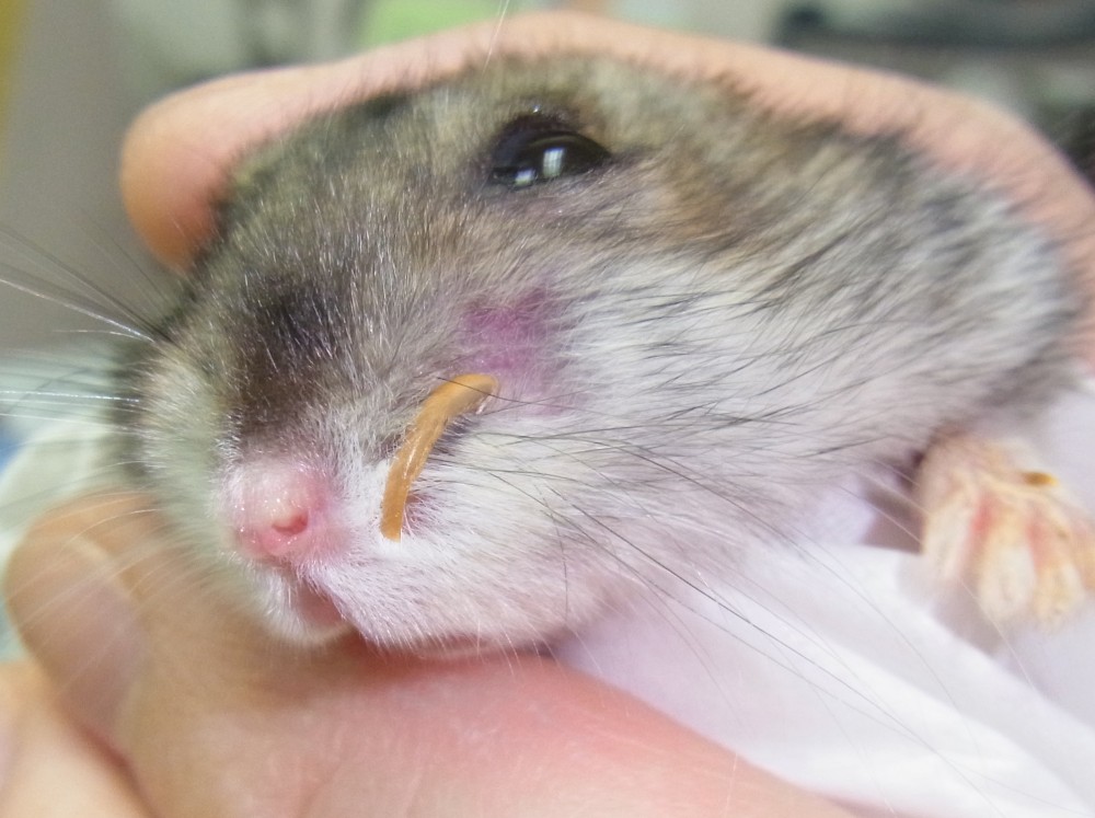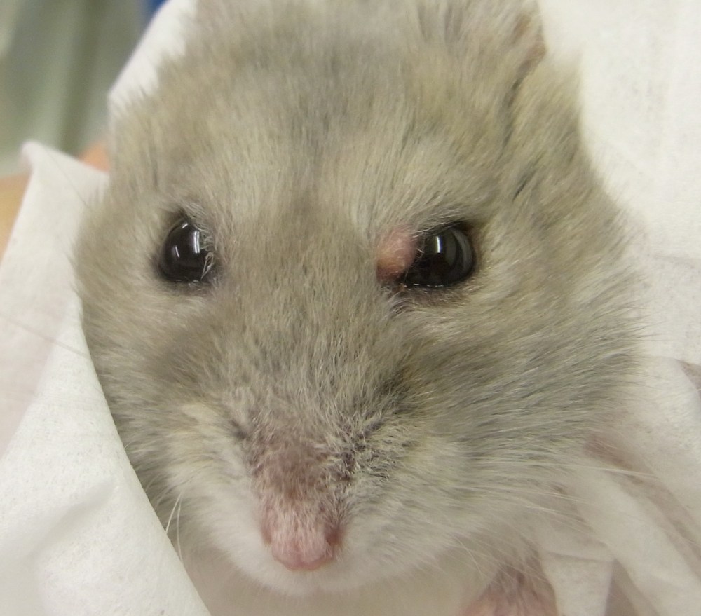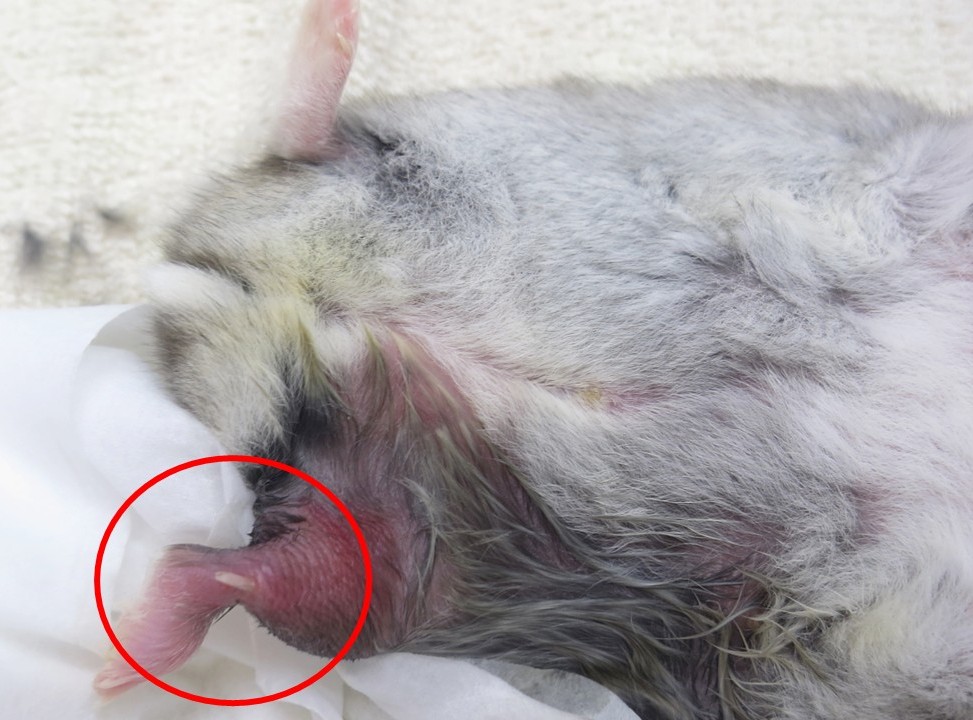 ゴールデンハムスターよりもジャンガリアンハムスターでの発生が多いです。ジャンガリアンハムスターは、頬袋口と口角の間の頰粘膜面に臭腺があり、その影響で頰袋脱が起こりやすいと考える獣医師もいます。ゴールデンハムスターにはこの臭腺はありません。