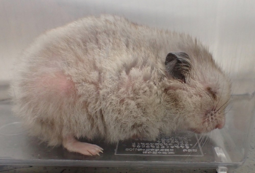 メスの生殖器疾患は加齢とともに好発し、特にゴールデンハムスターでの発症が多いです。陰部からの出血性分泌物の排せつが主な症状であり、排せつ量が多くなると貧血になり、元気がなくなって食欲の低下が認められます。