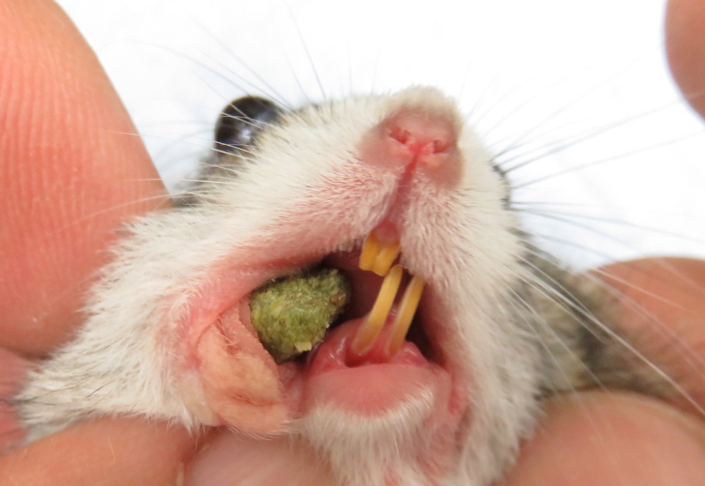 落下などの外傷や、ケージなどを咬むことによって切歯を傷めることが原因の一つと考えられています。予防として、網ケージや食器などの固い物を咬んでいる場合は、咬めないような環境に変更しましょう。