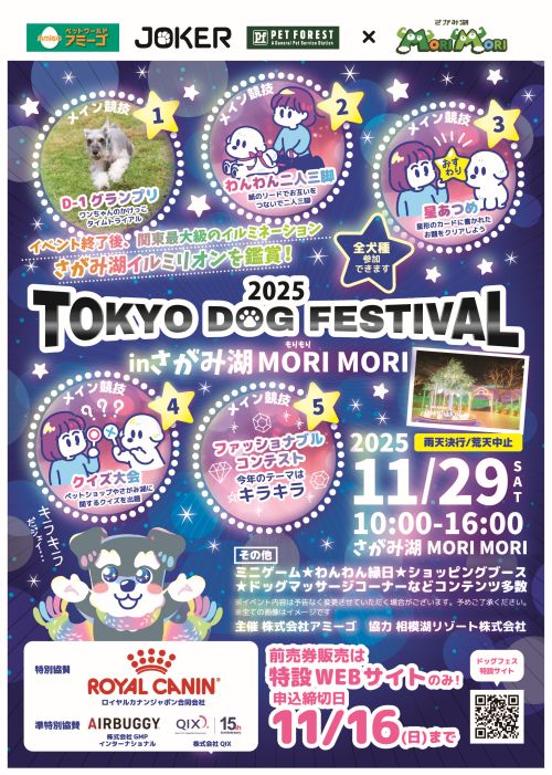 アミーゴは、さがみ湖MORI MORIにて、「TOKYO DOG FESTIVAL 2025」を2025年11月29日に開催します。