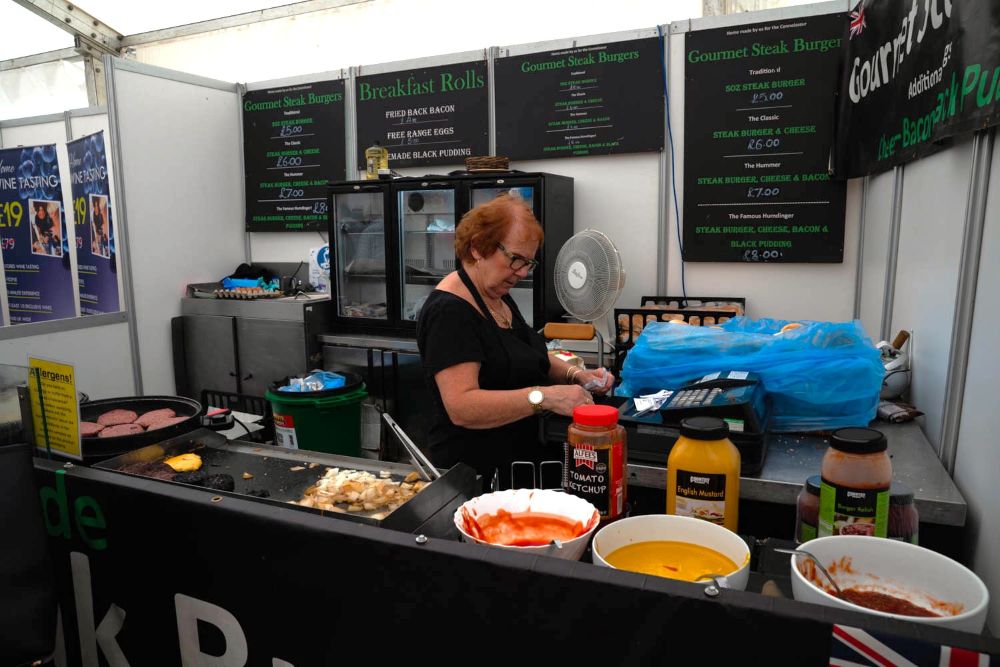 さらに会場内には、ヨークシャー各地のチーズや肉製品、ベーカリー、エールやサイダーなどを試食・購入できるフードエリアが並び、農機具や搾乳機器、飼料、牧草機械などの展示も充実していました。