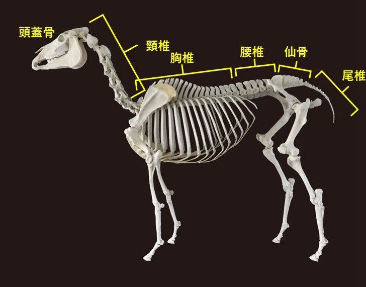 この背骨の堅さは、彼らが大型の草食動物であることに由来します。草食である馬の消化管は複雑で長大なので、消化管を含めた内臓の総計は相当な重量になります。この重さを支えて活発に行動するために、背骨は柔軟さを放棄して一本の堅い棒状の構造になったと考えられます。