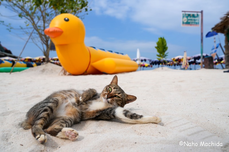 年明けに向かったのは、プーケットと周辺の島々です。強い日差しが照り付けるリゾート地で、観光客の喧騒をよそに、木陰で思い思いにくつろぐ猫たちの姿がありました。美しい青い海も存分に楽しむことができ、穏やかな雰囲気とともに、2025年の旅がゆるやかに始まりました。