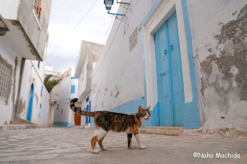 5月は北アフリカのチュニジアへ。アフリカ、アラブ、ヨーロッパの文化が混ざり合う独特な空気の中で、のびのびと暮らす猫たちの落ち着いたまなざしが印象に残りました。地中海沿いの美しい景色も堪能しました。