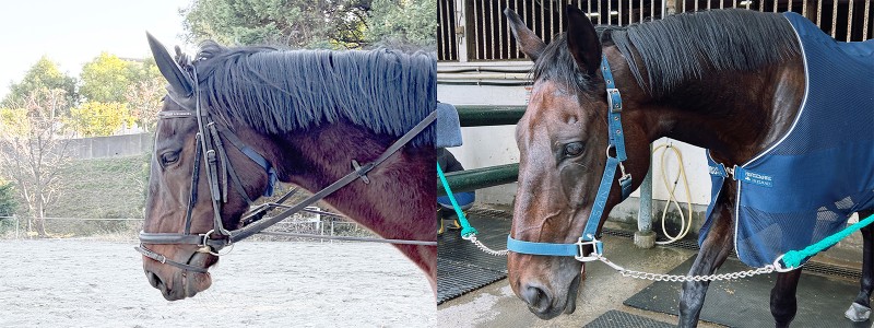 写真では両方使っていますが、どちらか片方を使うこともあります。これ以外にもさまざまな馬具がありますので、ぜひ競馬場のパドックなどで観察してみてください。