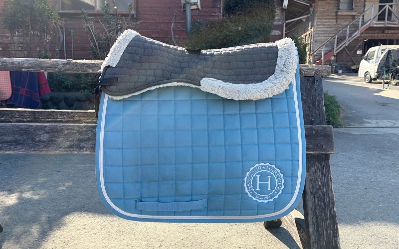 鞍の下には、馬の体を傷つけないようにボアやゼッケンを敷いて使用します。