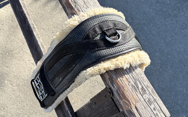 鞍がずれないように、馬のお腹に回して締める帯です。腹帯を締めすぎると馬に不快感を持たれますが、緩すぎると鞍が回転してしまい危険です。そのため、適度な調整がとても重要になります。