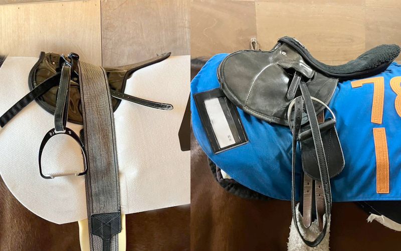 障害鞍は、障害物を飛ぶ際に前かがみの姿勢がとりやすい形です。馬場鞍は座る部分が深く平らで、人が脚を長く使いやすい作りになっています。総合鞍は障害鞍と馬場鞍の中間的な設計がされた汎用性の高い鞍です。