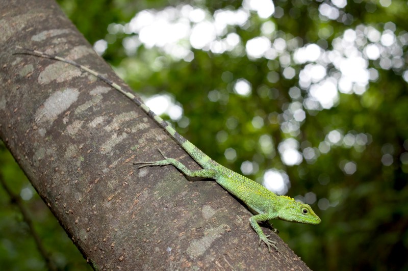 このトカゲは、森に溶け込むとまるで忍者のような動きを見せてくれます。すぐ近くにいても気づかないくらい、木々に擬態しています。運よく目にしたとしても、捕まえようとするとすぐに木の裏側に移動されます。それを追って裏側に回ってもすぐまた裏側に行かれてしまい、追いかけっこになります。らせん状に木の上の方へ移動を繰り返すため、手に負えません。