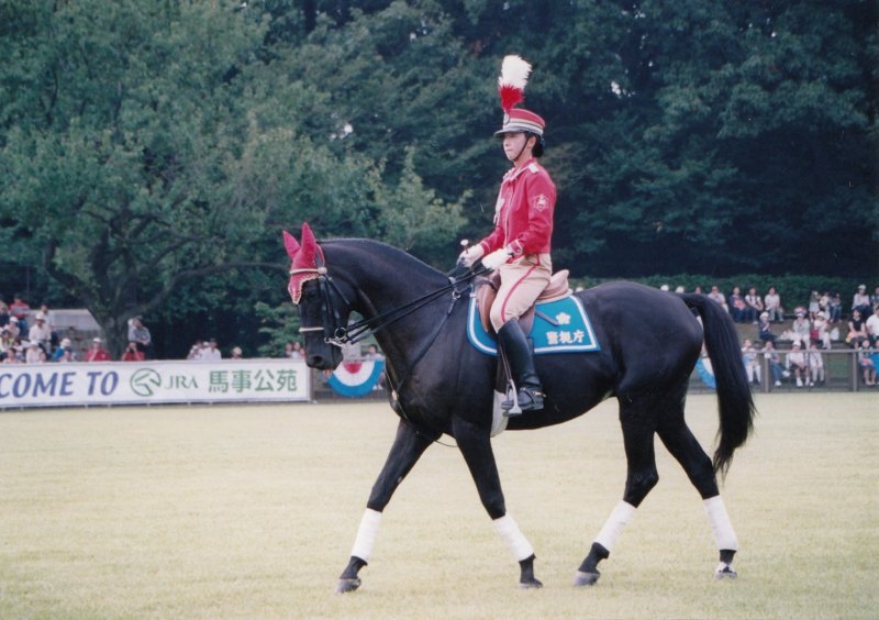 乗用馬の中でもひときわ目を引く存在として、競馬場で出走馬を華麗に先導する誘導馬や、乗馬競技で活躍する馬、警視庁や京都府警察の騎馬隊に属し、交通安全教育や警護などの任務にあたる使役馬があげられます。