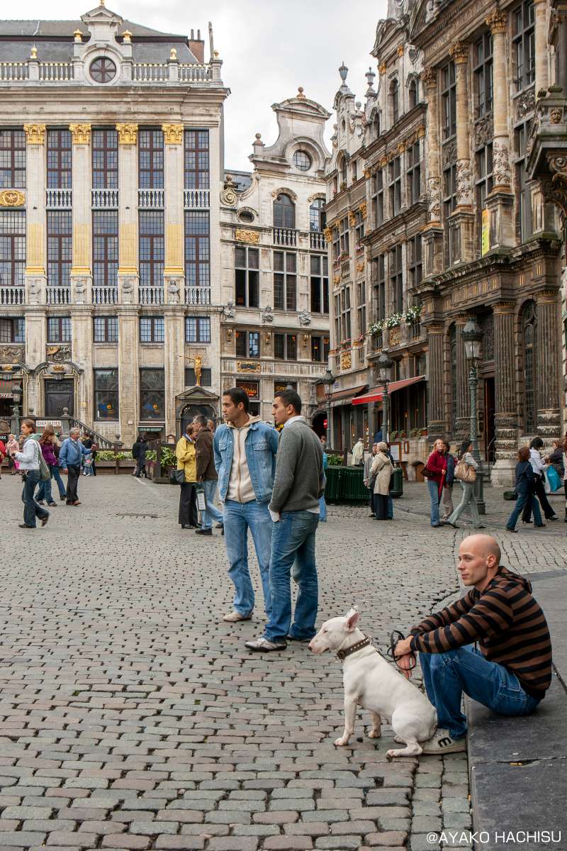 ジュドバル広場からポワンソン通りを真っ直ぐ進み、世界遺産であるグラン・プラスに向かいました。グラン・プラスまでは徒歩で約20分の距離でしたが、その途中でフレンチ・ブルドッグやジャック・ラッセル・テリア、ケアーン・テリアなど、さまざまな犬種に出会いました。