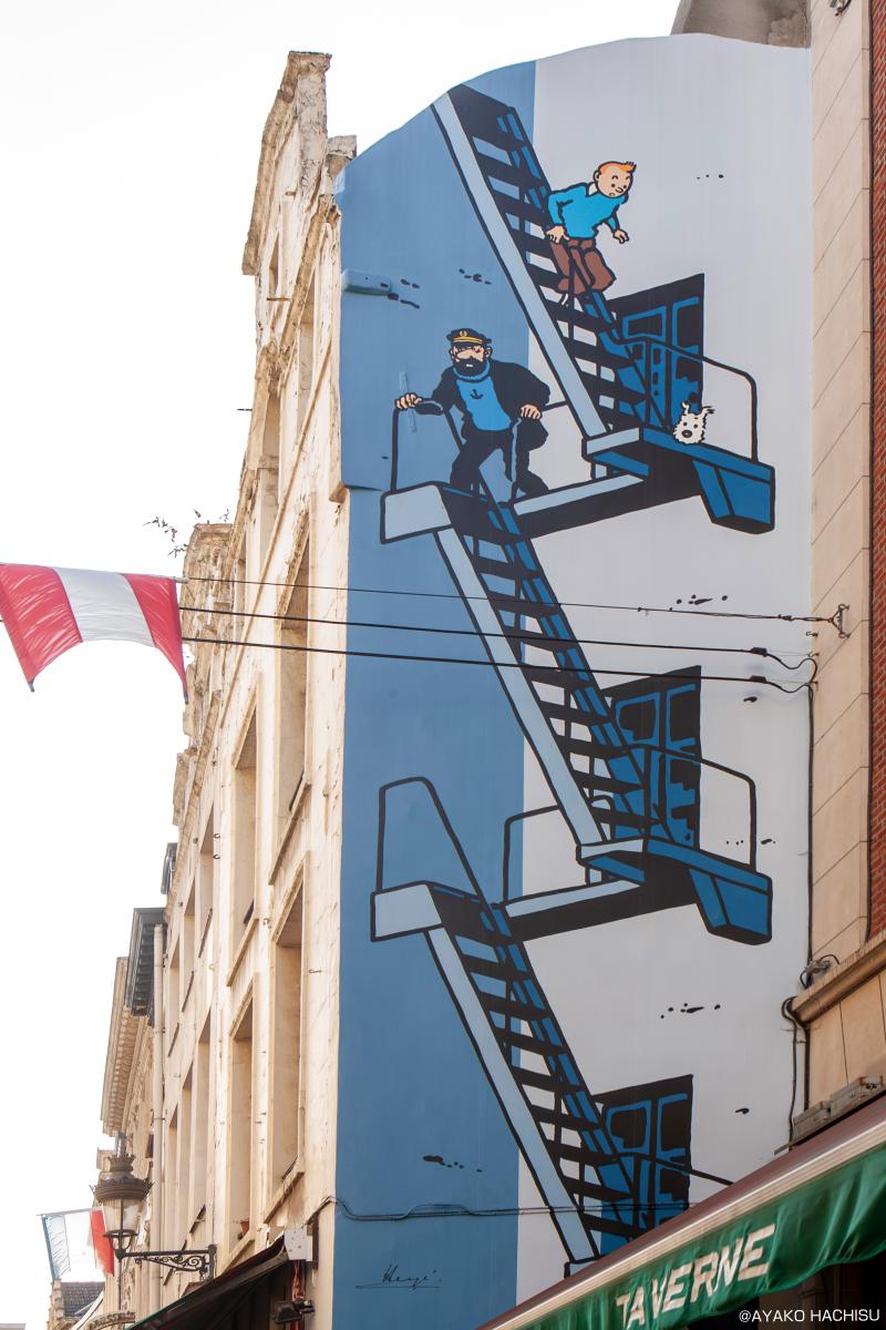 その後、有名な「小便小僧」や、ベルギー出身の漫画家・エルジェ氏が生み出した『タンタンの冒険』の壁画も見つけました。
