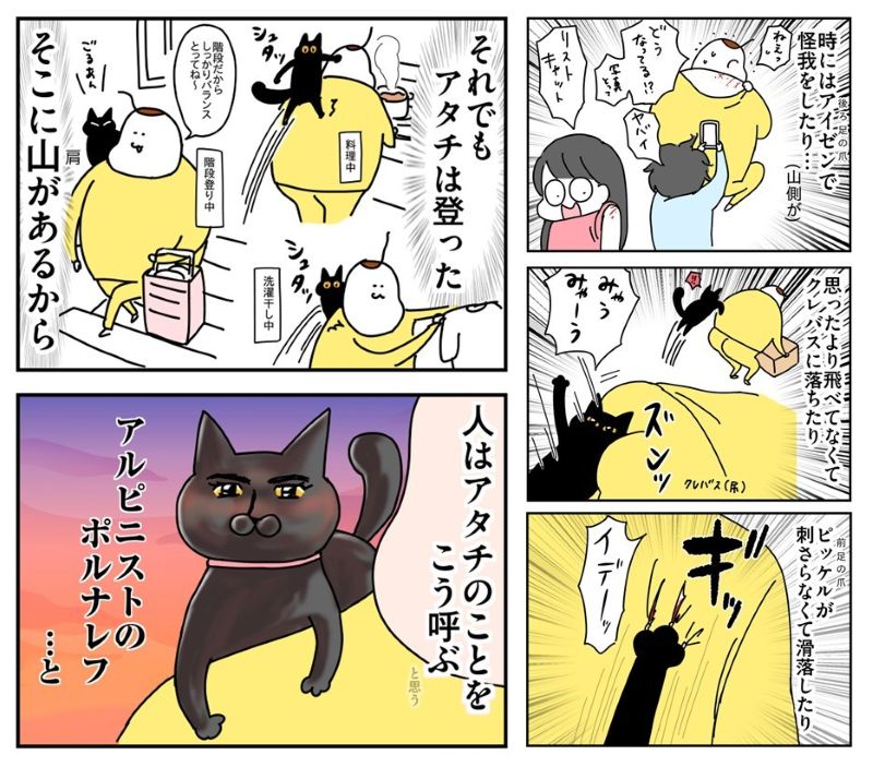 ポルちゃんは、人に登るのが好きです。好奇心旺盛なアルピニストのポルちゃんは、数々の山(人の肩)を登ってきました……。人の肩だけではなく、高いところが好きみたいで、上へ上へと登り続けています。