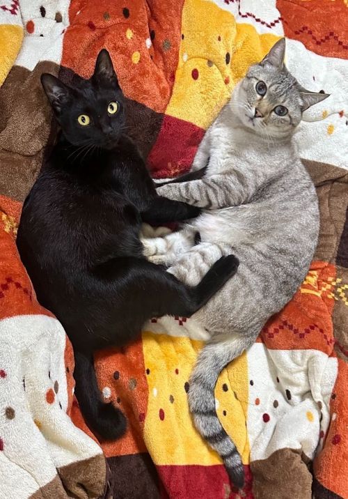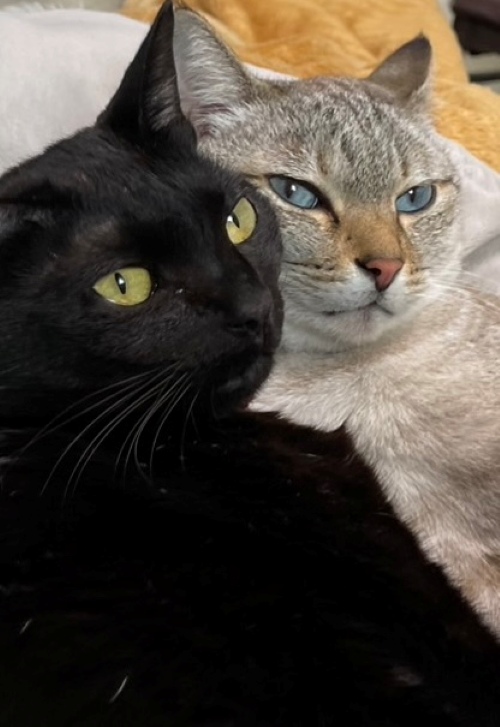 ポルちゃんは甘え上手で、ジョルノのことが大好きです。ジョルノは繊細なので、ポルちゃんを保護したときに仲良くできるか心配でした。でも、ポルちゃんが積極的にコミュニケーションを取ってくれているおかげで、今では2匹の仲睦まじい姿を見られて、いつも癒されています。たまにジョルノに怒られていますが(笑)