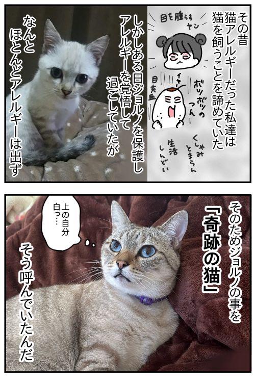 実は、私も娘も猫アレルギーを持っているので、ジョルノもポルちゃんも一時的に保護するつもりでした。でも、不思議なことにアレルギー反応がほとんど出なかったんです。