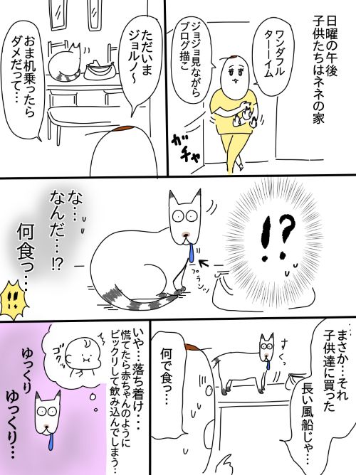 以前、ジョルノがゴム風船とヨーヨーの紐を誤飲してしまったことがありました。その時は、すぐに動物病院で処置をしたので助かりましたが、万が一のことがあってからでは遅いので、口にしてしまう可能性があるものは買わないように気を付けています。生活をする上で必要なものは、見つからない場所、開けにくい場所にしまうようにしています。