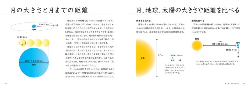 本書ではまず、そんな「なぜ、月にはいろいろな表情があるの?」という素朴な疑問をやさしく解説します。月、地球、太陽の位置や大きさ、動きなど、かかわっているさまざまな事象を、図や写真でていねいに紐解いていきます。本書を読めば、月の観察がもっとおもしろくなるかも?