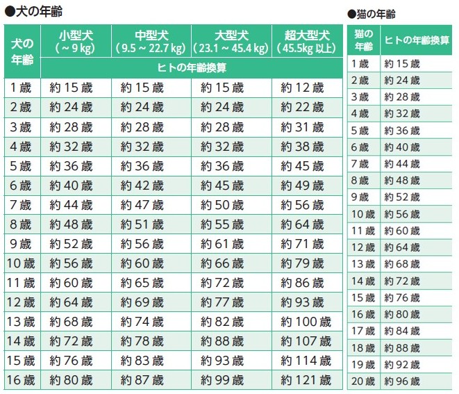 ・中型犬(体重9.5~22.7キログラム):11歳以上