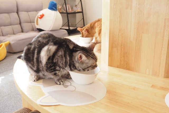 また、猫は1日を通してダラダラと食べる食性を持つので、フードボウルに餌が少なくなると補充する、という与え方をする人も多いです。この餌の与え方を不断給与といいます。この方法では1日にどのくらい与えているか分かりづらくなり、実はオーバーカロリーだった、ということが起こりやすくなります。そして肥満になった猫において、不断給与の傾向がとても多いようです。また、多頭飼いをしている場合は、肥満になった猫が他の猫の餌もほとんど食べてしまうようです。