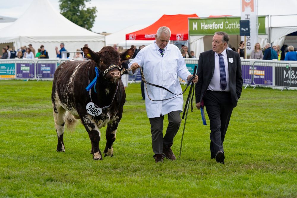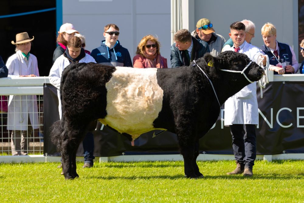 黒い体に白い帯の入ったベルティ(ベルティッドギャロウェイ)も印象的です。そして、畜産を専門にしている立場からは、巨大なオス牛が会場内を歩いているだけでも驚きます。力のあるオス牛を安全に扱うのは、決して簡単ではないからです。
