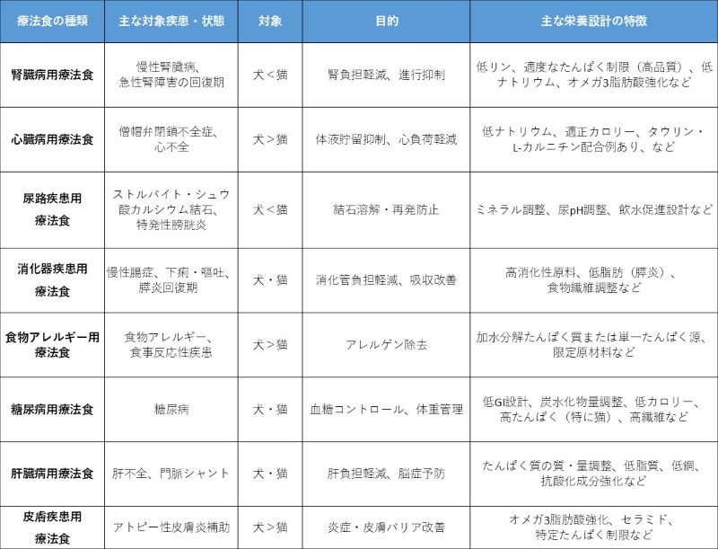・主な目的:消化管への刺激軽減、消化吸収の改善、膵炎や慢性腸症の管理