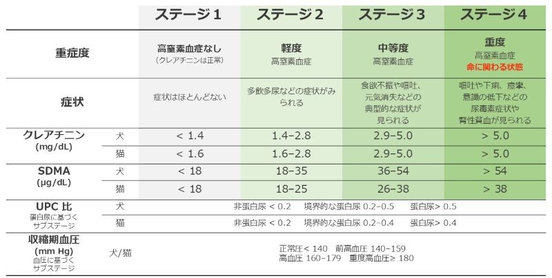慢性腎臓病は、国際獣医腎臓病研究グループ(IRIS)によってステージ1〜4に分けられています。