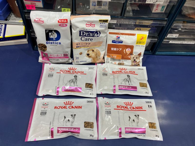 まずは、いくつかの腎臓病用フードのサンプルを試します。ひとつに決めても途中で食べなくなることがあるので、複数の候補を用意しておくと安心です。