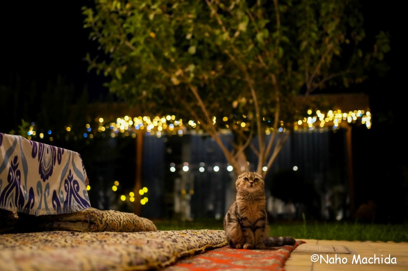 9月のウズベキスタンは昼夜の寒暖差が大きく、日中は半袖で過ごせますが、朝晩はダウンを羽織りたくなるほど冷え込みます。夜になると、ティゴちゃんはフロントでスタッフと一緒に過ごしていました。スタッフみんなに愛されている猫でした。