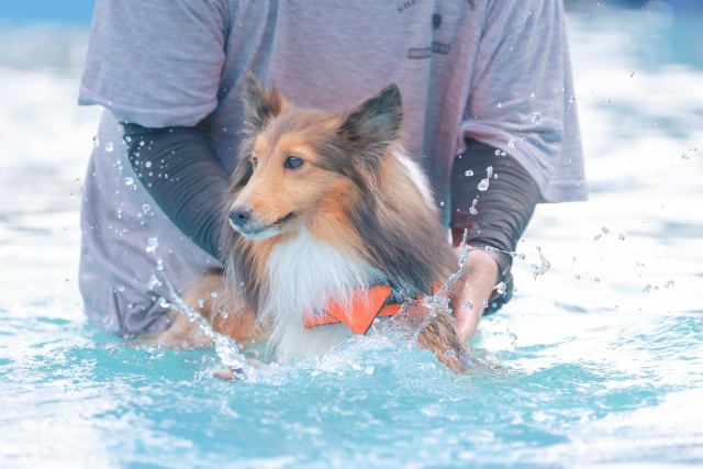 水泳療法は効果の高い運動療法となります。関節に負担をかけずに筋力アップをすることができ、短時間で陸上の数倍となる運動量となります。ただし、いきなり泳がせることはトラウマとなる可能性があることと、水圧により呼吸に負荷がかかるので注意が必要です。