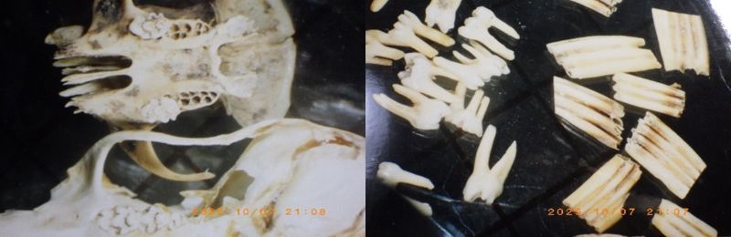 この点は、当然ながら人法医学でも認識されており、「骨検査」として知られています。人骨か獣骨か、同一人か複数か、焼かれたか、人種・性別・年齢・身長、経過時間などを割り出すための手掛かりにされています。このような手法は、ヒト以外の種を扱う獣医学では不十分でした。野生動物の法獣医学を発展させるために人の法医学の理論・技術を学ぶべきと強く感じさせます。
