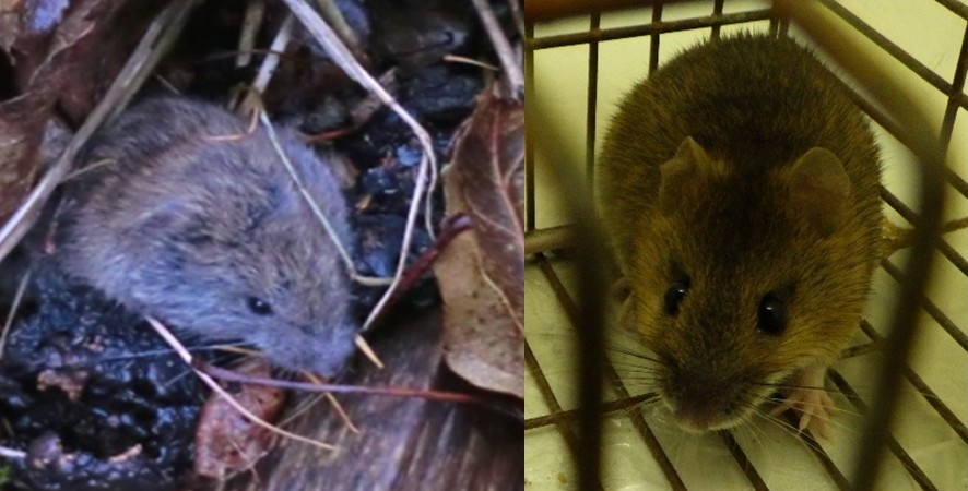 図1右の臼歯のうち、左側がアカネズミ類、右側がヤチネズミ類です。このように、野ネズミは種類によって臼歯の形が全く異なるので、種の判別できます。