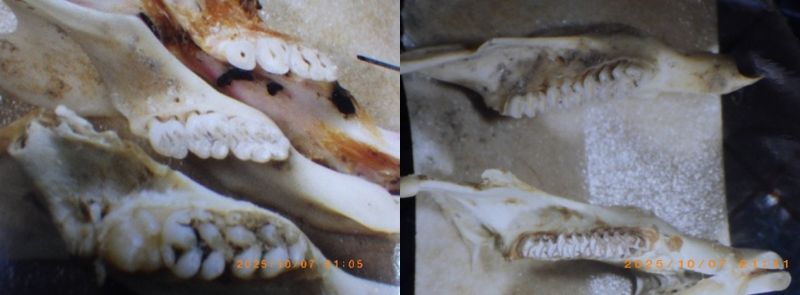 当方に依頼される「法獣医学ど真ん中」の案件では、謎の大量死や不審死と目されるような動物死体が運ばれてきました。その事例のいくつかを本連載で紹介してきました。多くの死体が腐って他動物に食べることで、骨皮だけの場合あるとも話しました。その一例として海鳥類の事例をお示ししましたね(当連載第3回の写真2の右)。