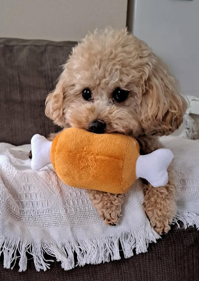オモチャを咥えた、とびっきり可愛い1枚です!