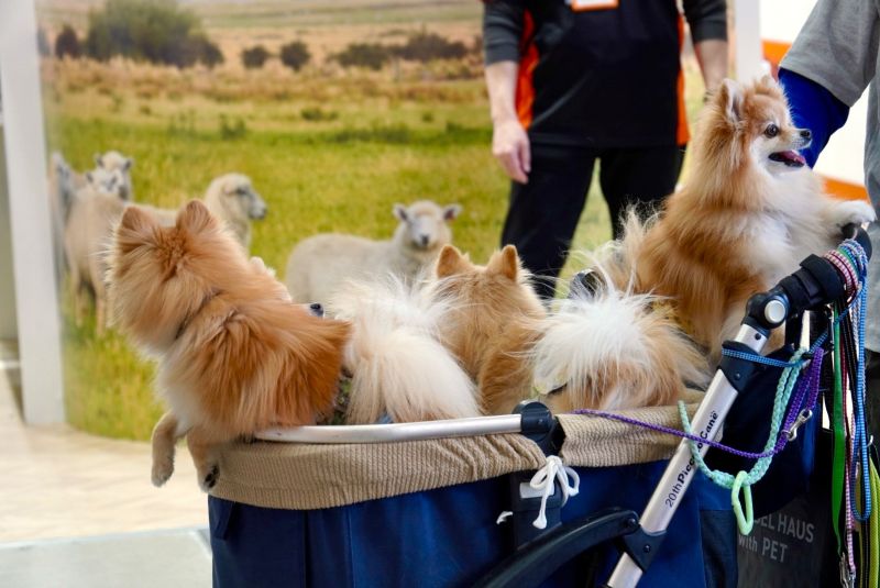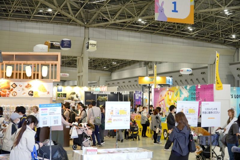 会場内はペットの同伴が可能で、多くの来場者が愛するペットと一緒にブースを回っていました。