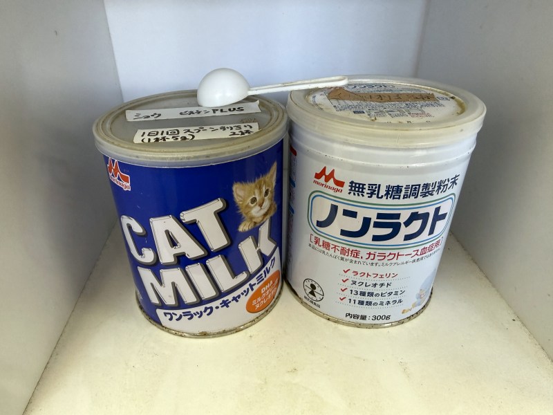 基本的には、キャットミルクだけです。ただし、おなかが緩くなった時などには漢方薬を混ぜたりしていました。