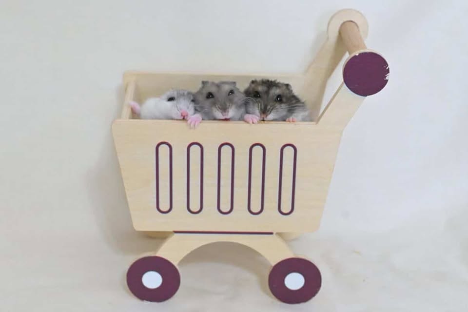 我が家で生まれたハムスターの赤ちゃん達を、おかいもの風に撮影しました🤭