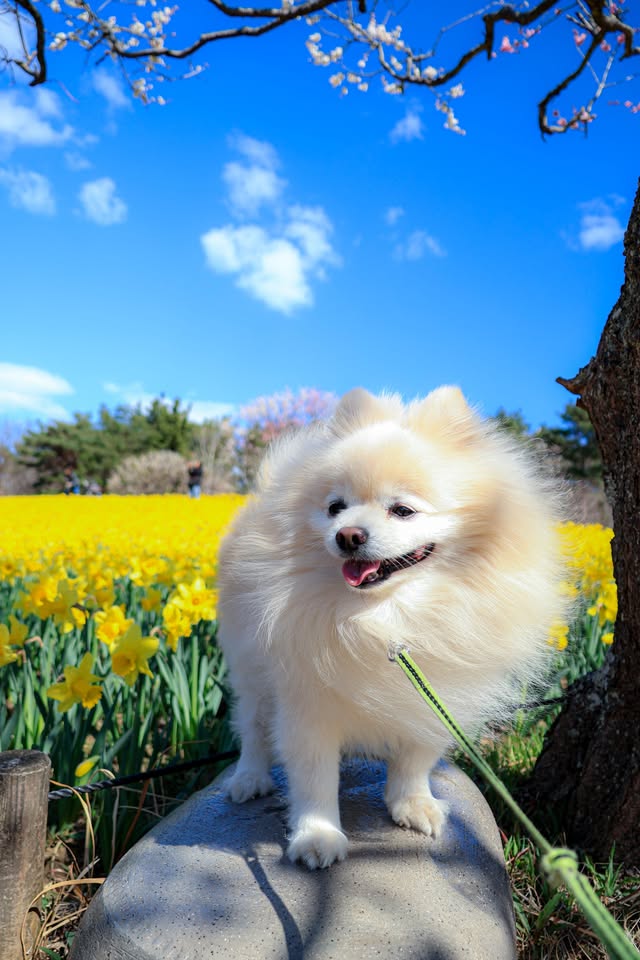 スイセンを見て、他のワンコ達とも交流出来て、ご満悦な我が子です。