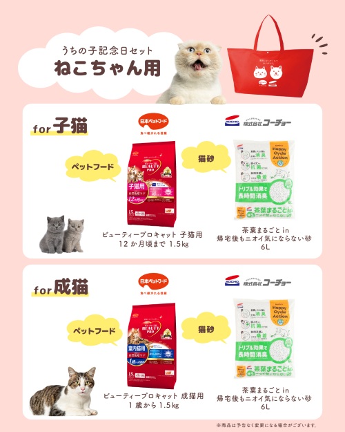 5月6日以降、そんな「しっぽのバトン」から家庭にお迎えされる犬や猫とその家族へ、感謝と応援の気持ちを込めて「うちの子記念日セット」が提供されるとのこと。セット内容は次の通り。