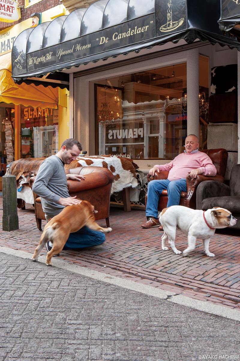 このブルドッグたちは街でもすっかり有名らしく、あちらこちらから声をかけられていました。その様子を眺めながら、ユトレヒトでは表の人気者がミッフィーなら、陰の人気者はこのブルドッグ家族なのかもしれないと、そんなことを感じた、心温まる旅のひとコマでした。