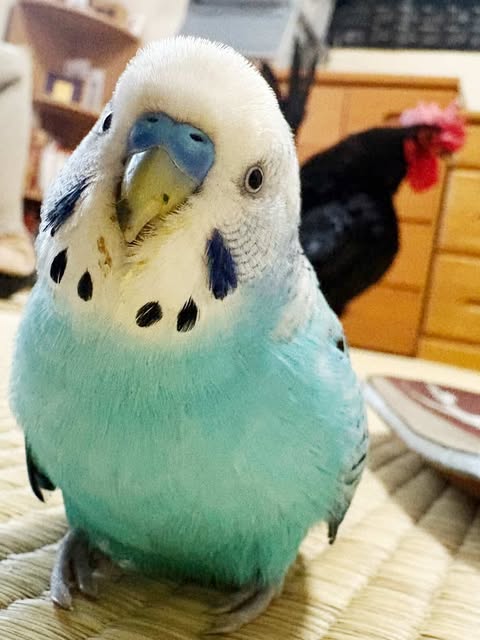 先住チャボのモンティにも認められて、得意顔。